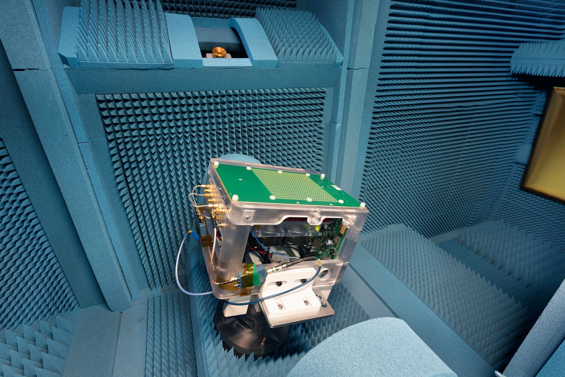 Kyocera's Phased Array Antenna Module (PAAM) is designed for security applications, including critical infrastructure threat detection, national security, and drone surveillance, providing improved situational awareness by generating multiple simultaneous beams in different directions and frequencies. This enables users to monitor wide areas and respond rapidly to threats. For optimal beam steering and directivity, Kyocera employs Rohde & Schwarz CATR (Compact Antenna Test Range)-based multi-reflector Over-the-Air (OTA) testing technology.